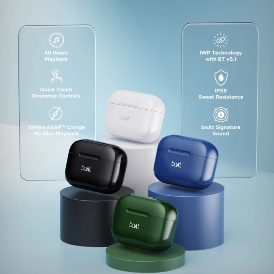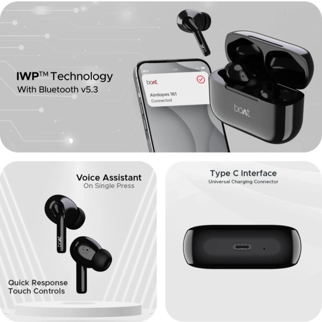 161 with 40 Hours Playback, ASAP Charge & 10mm Drivers Bluetooth Headset (Pearl White, True Wireless)