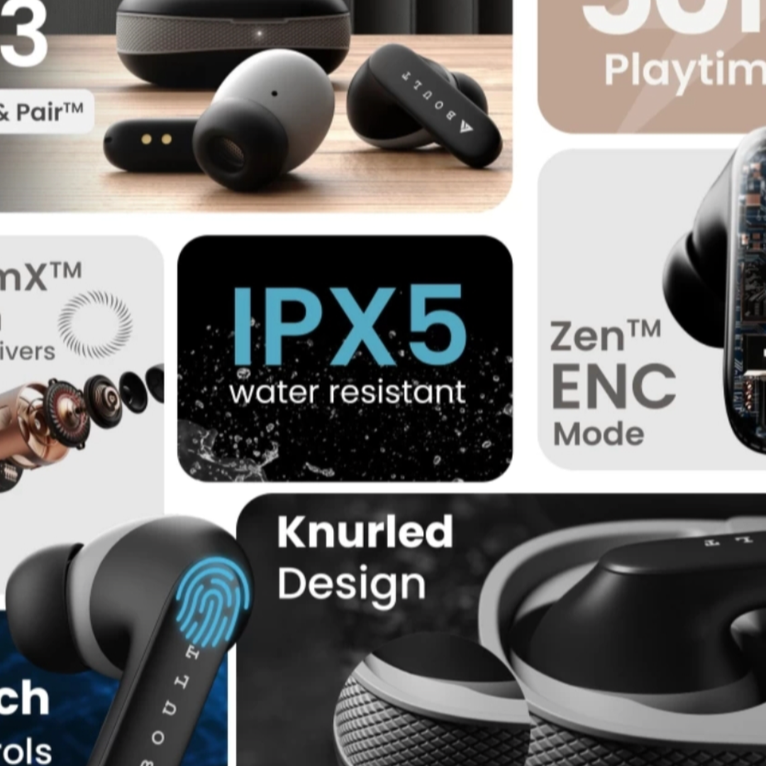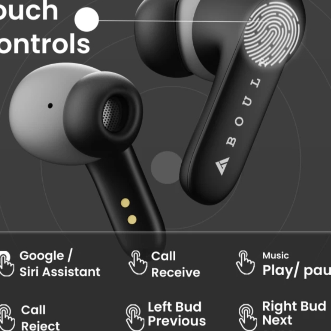 Boult Audio Y1 with Zen ENC Mic, 50H Battery, Fast Charging, Pro+ Calling, Knurled Design Bluetooth Headset (Black, True Wireless)